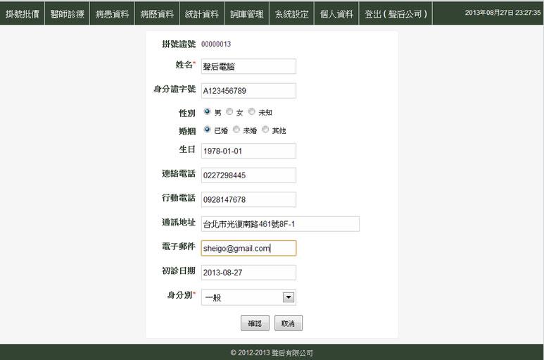 - 當查詢無此資料時,會出現「查無資料,是否新增病患」,點選「確定」,即出現「病患基本資料」輸入視窗。