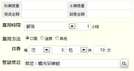 填寫服用時間、服用方法、開藥次包日數、警語禁忌