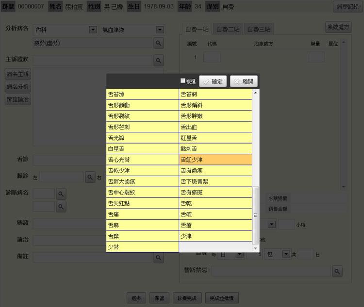 - 舌診:點選「查詢鍵」,出現舌診選單。(或直接輸入舌診)