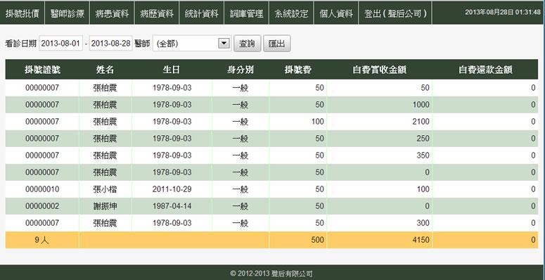 - 自費人數統計