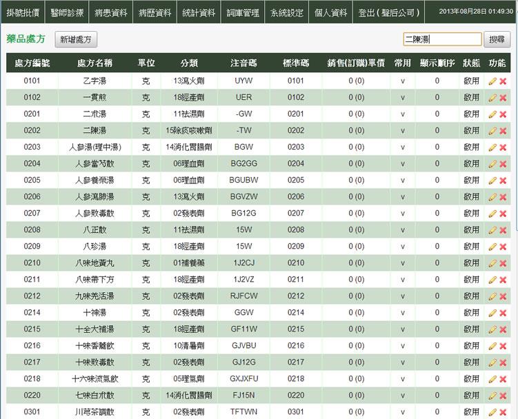 - 詞庫管理 > 藥品處方 > 搜尋藥品名稱(關鍵字、處方編號、注音碼)
