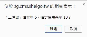 表示「二陳湯」已低於警示量,請注意。